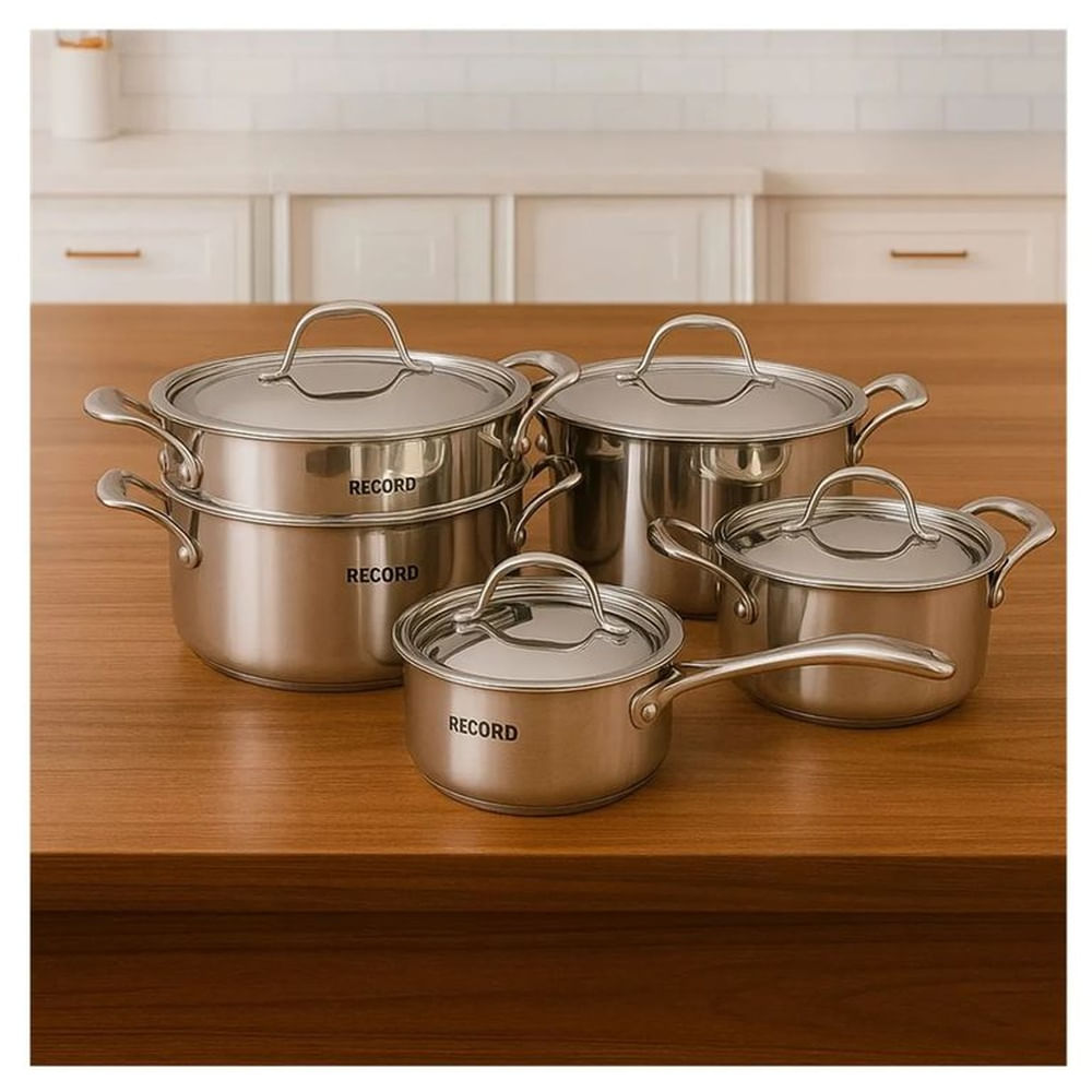 JUEGO DE OLLAS RECORD PIACCERE DE ACERO INOXIDABLE 9 PIEZAS Gris