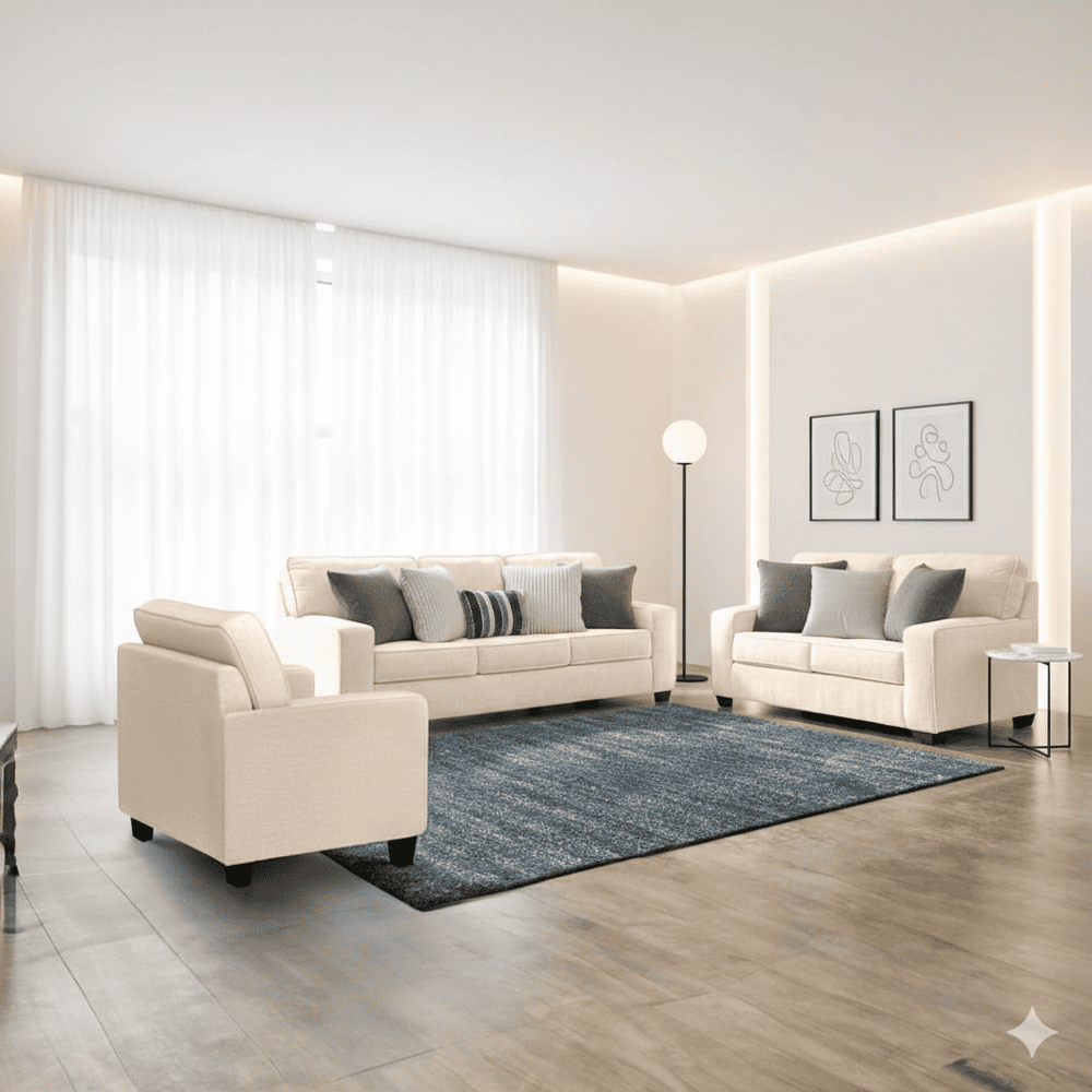 Juego de Sala Raven 3-2-1 + Banqueta Beige - Juego de Sala Raven 3-2-1 y Banqueta Beige