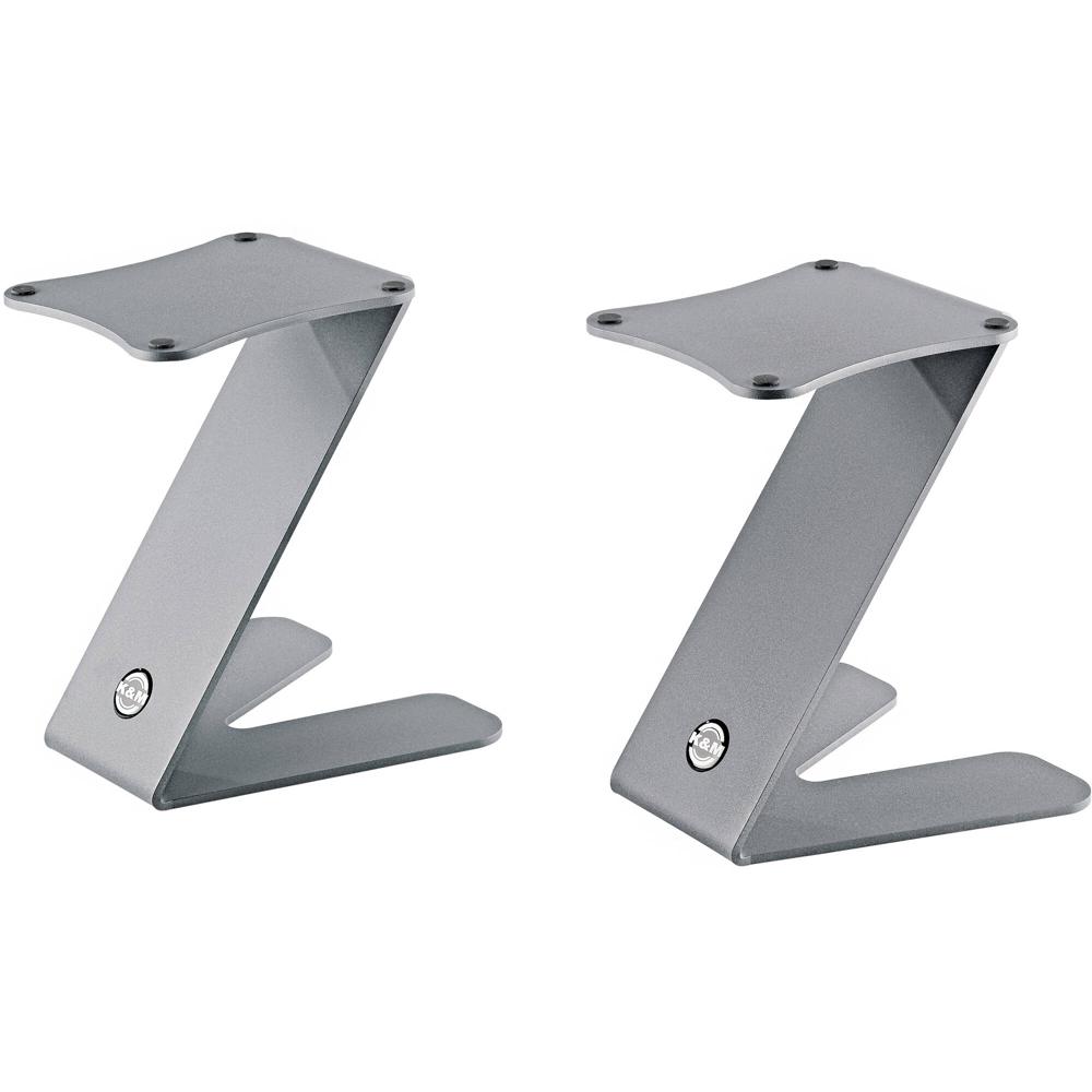 K&M 26773 Soporte de Monitor de Escritorio Z-Stand (Par, Gris) - Soporta Monitores de Estudio, Placa