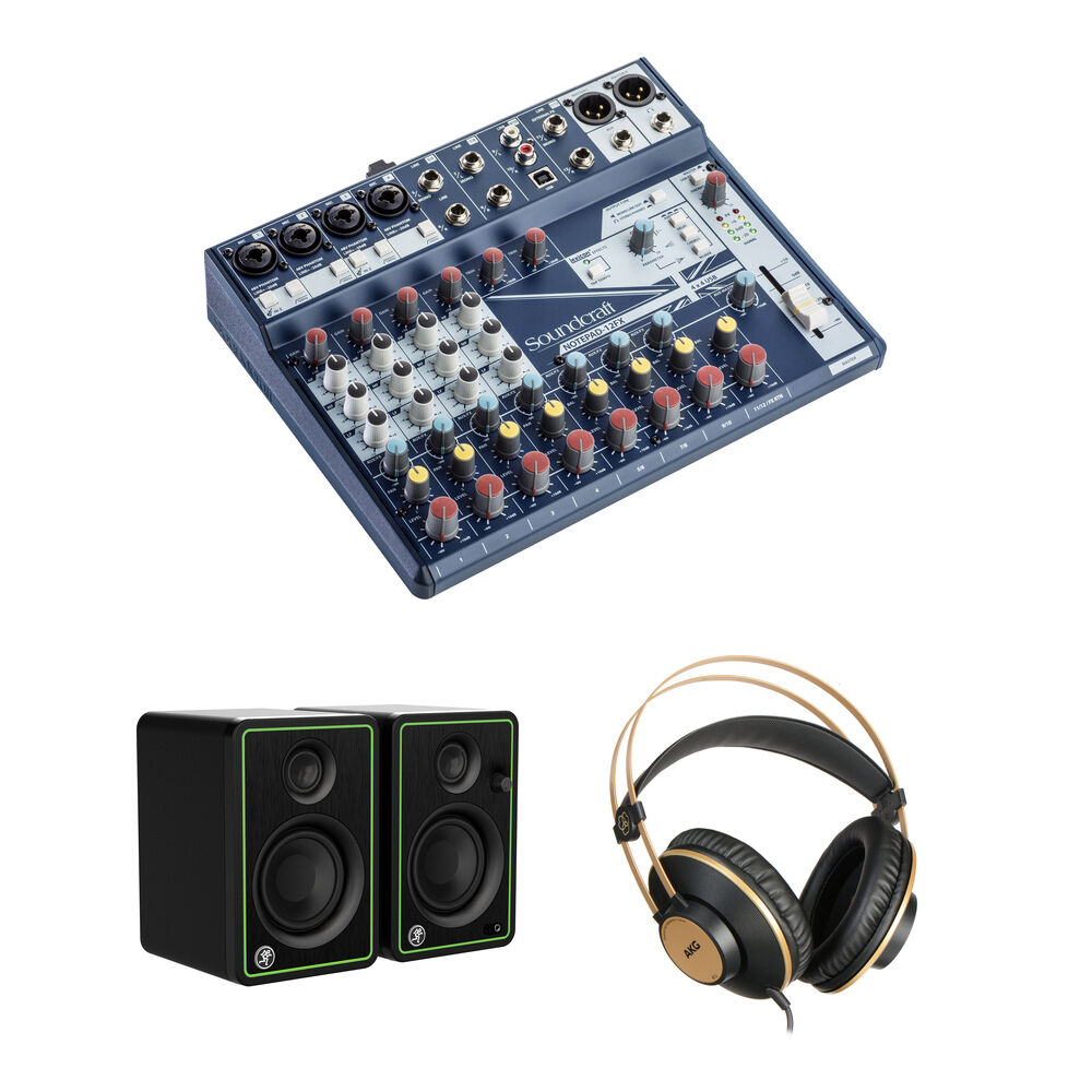 Kit de Mezcla Soundcraft Notepad-12FX, Monitores JBL Reference y Auriculares AKG K92