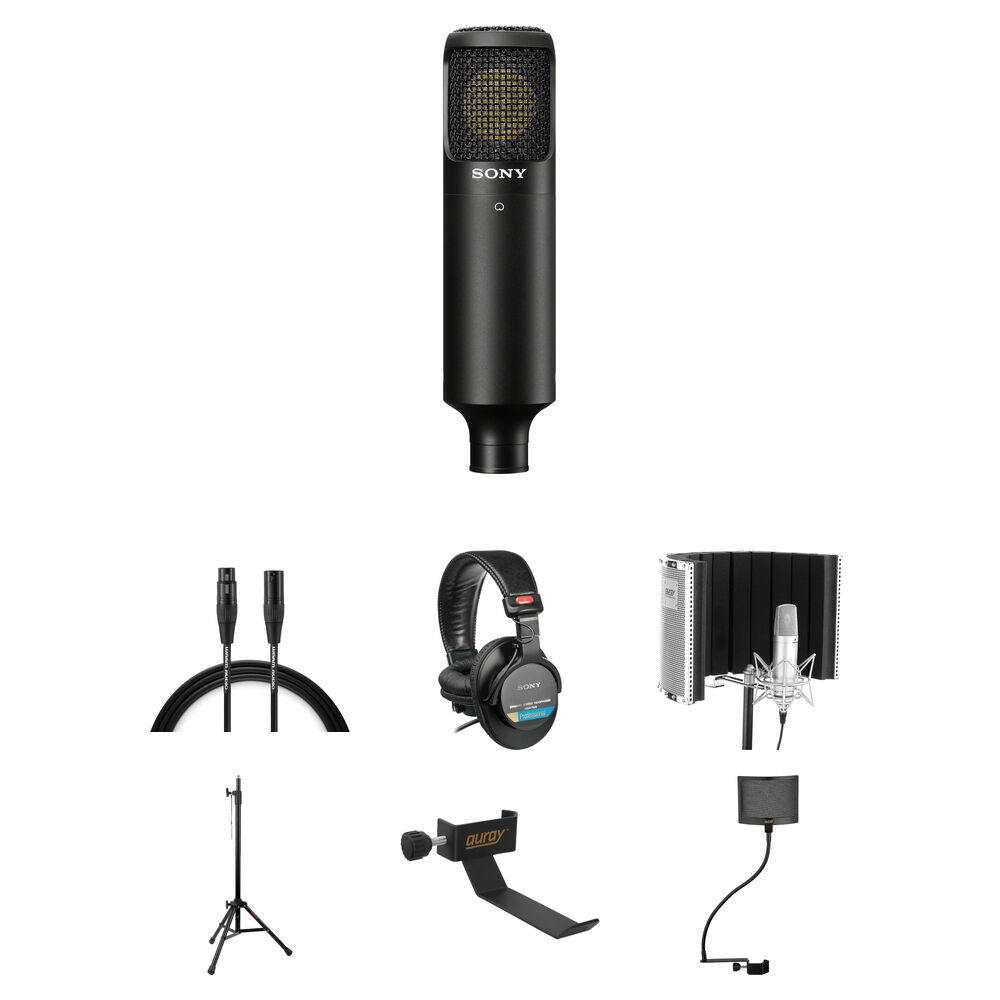 Kit de Micrófono de Condensador Cardioide Sony C-80 con Filtro de Reflexión y Auriculares MDR-7506