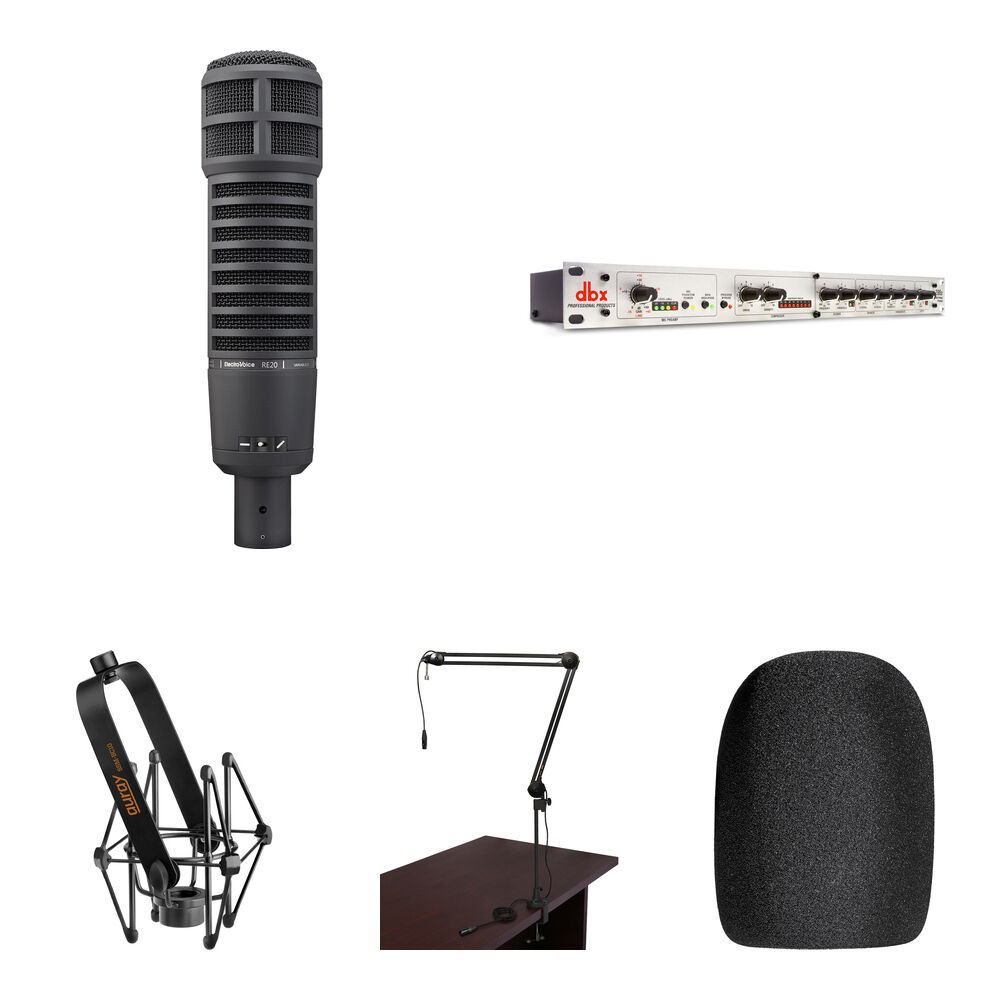 Kit de Micrófono Dinámico Electro-Voice RE20 para Podcasters y Locutores con Preamp dbx 286s (Negro)