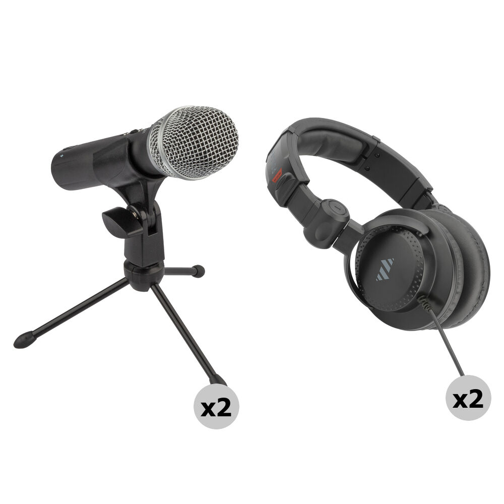 Kit de Micrófono Dinámico Polsen DM-USX1 con Auriculares de Estudio Monitores (Kit para 2 Personas)