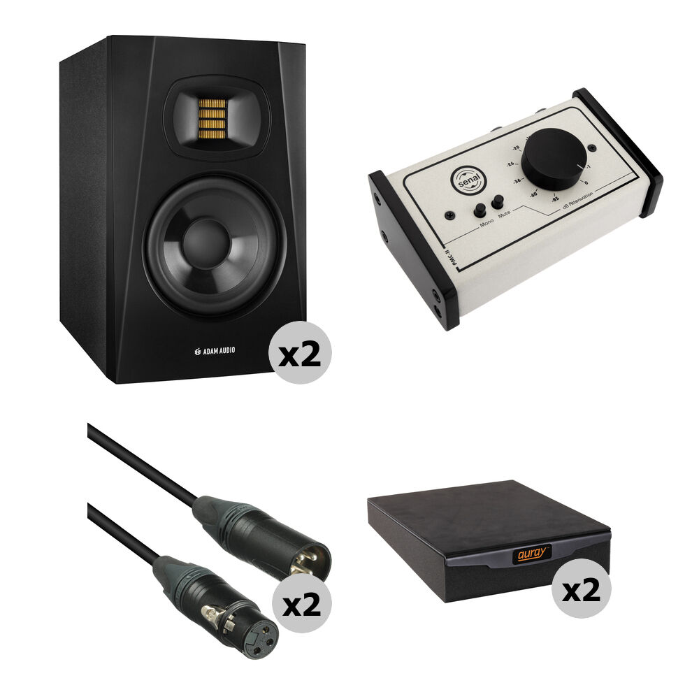 Kit de Monitores de Estudio Adam T5V de 5", Controlador de Monitores y Almohadillas de Aislamiento