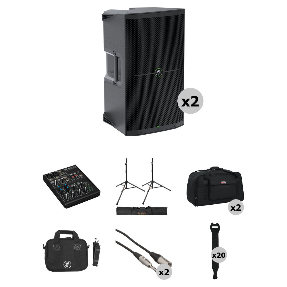Kit de PA y Mezcla Mackie Thump212 con Mezclador, Soportes, Bolsas y Cables - Portátil, Protección c