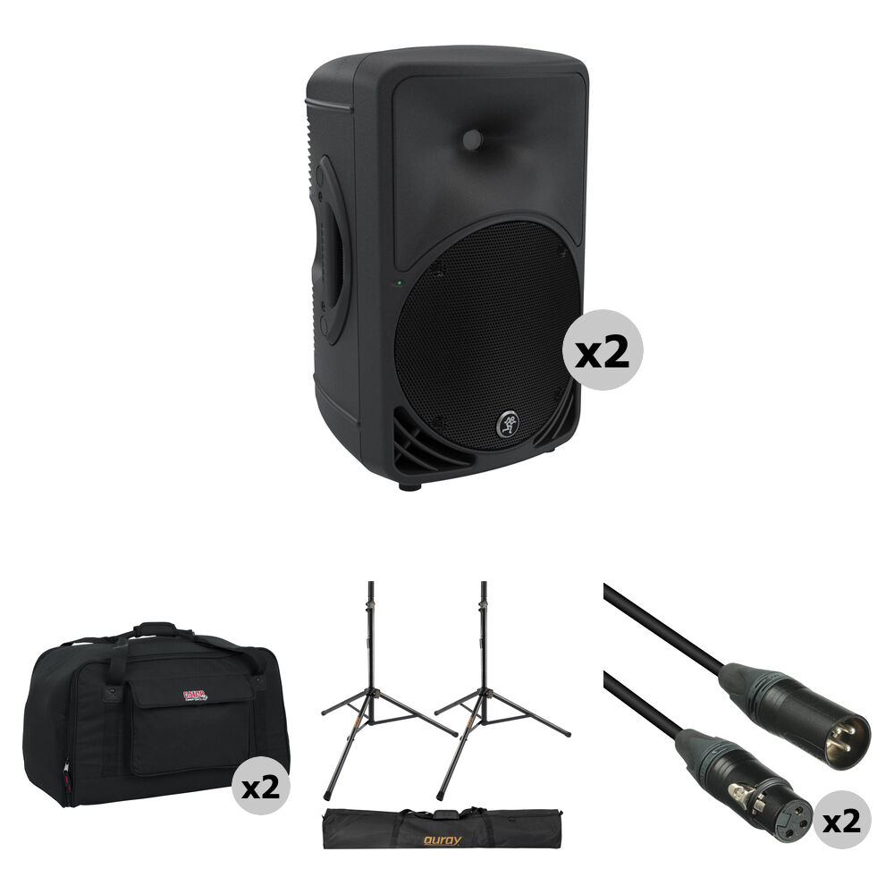 Kit de Pareja Mackie SRM350 con Soportes, Cables y Bolsas - Altavoces de 10" y 1.4", Cruce de Precis
