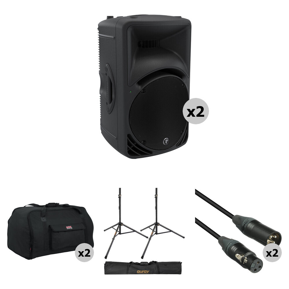 Kit de Pareja Mackie SRM450 con Soportes, Cables y Bolsas - Altavoces de 12" y 1.4", Cruce de Precis
