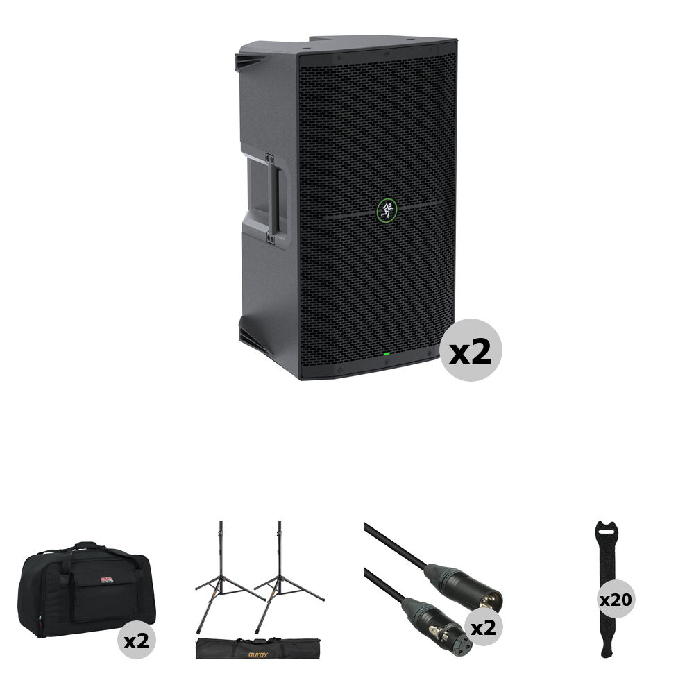 Kit Mackie Dual Thump212 con Fundas para Altavoces, Soportes Tripode, Bolsa para Soporte y Cables XL