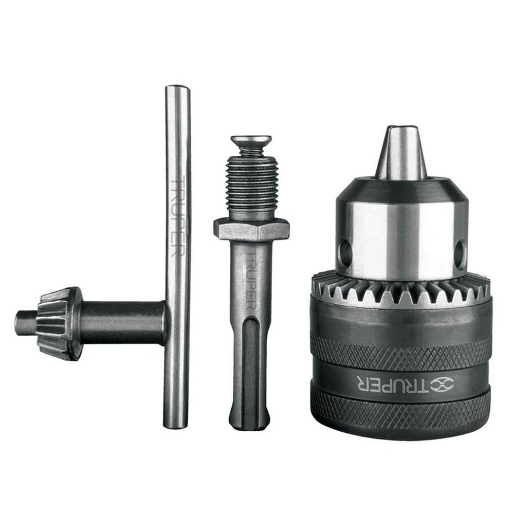 kit mandril broquero con llave y adaptador para taladro SDS Plus Gris