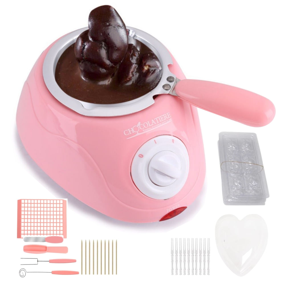 Kit Olla Chocolatera Rosada Eléctrica con Utensilios para Repostería