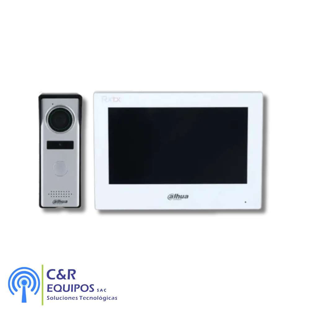 Kit videoportero sistema hibrido 4 hilos monitor frente de calle DHI-KTH01