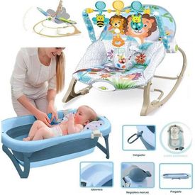 Tina de Baño con Termómetro JELLY azul y Mecedora Leon