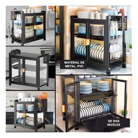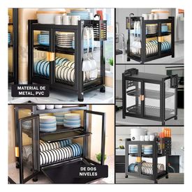 Escurridor de Platos de 2 Niveles Cerrado en Color Negro