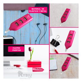 Hub con 4 Puertos Usb 2.0 en Tono Fucsia Y+Stickers