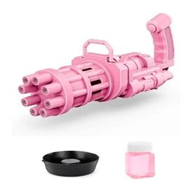 Pistola de burbujas con 8 agujeros + Frasco Petit de líquido, color Rosado