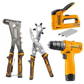 Taladro + Remachadora alicate sacabocado + Engrapadora clavadora