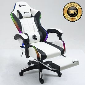 Silla Gamer Ergonómica Dreizt Shine RGB Series Blanco Luces Con Posapies Reclinable