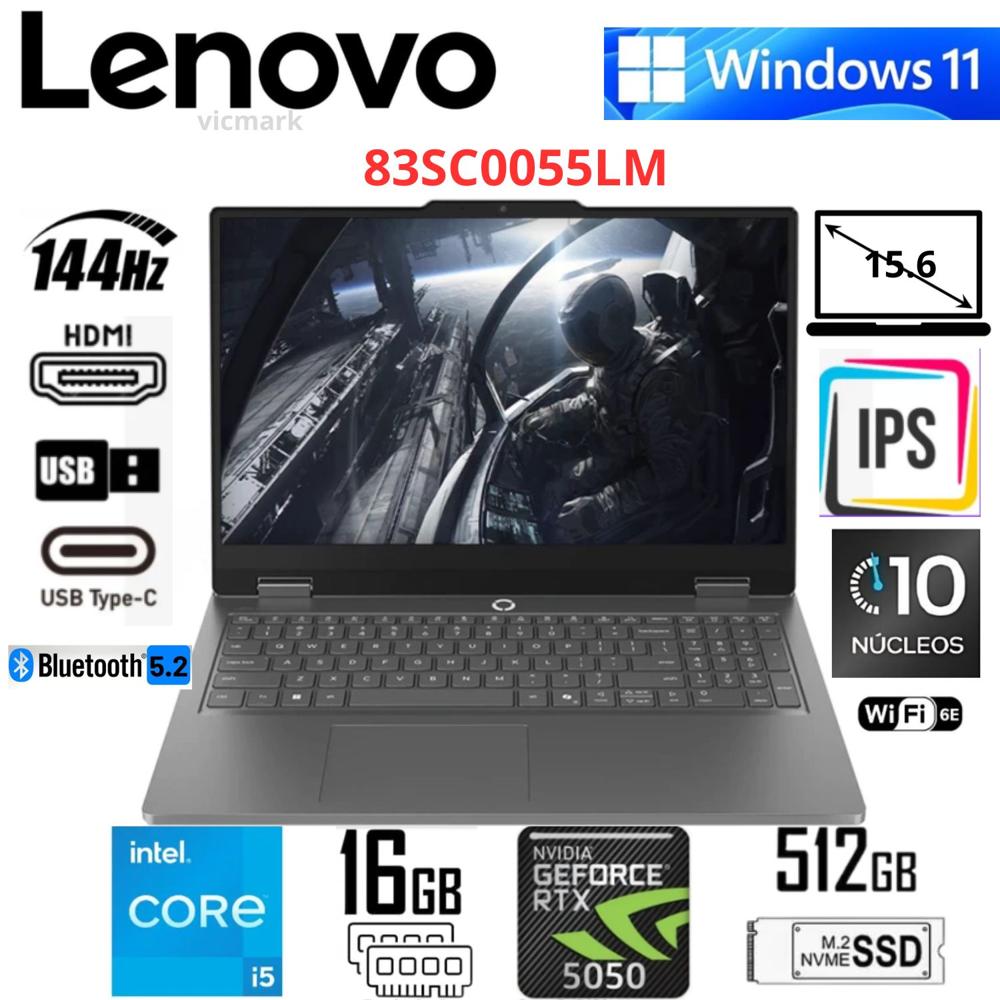 Laptop Gamer Lenovo LOQ 15IRX9 i5-13450HX RTX 5050 8GB 16GB RAM 512GB SSD 144Hz FHD