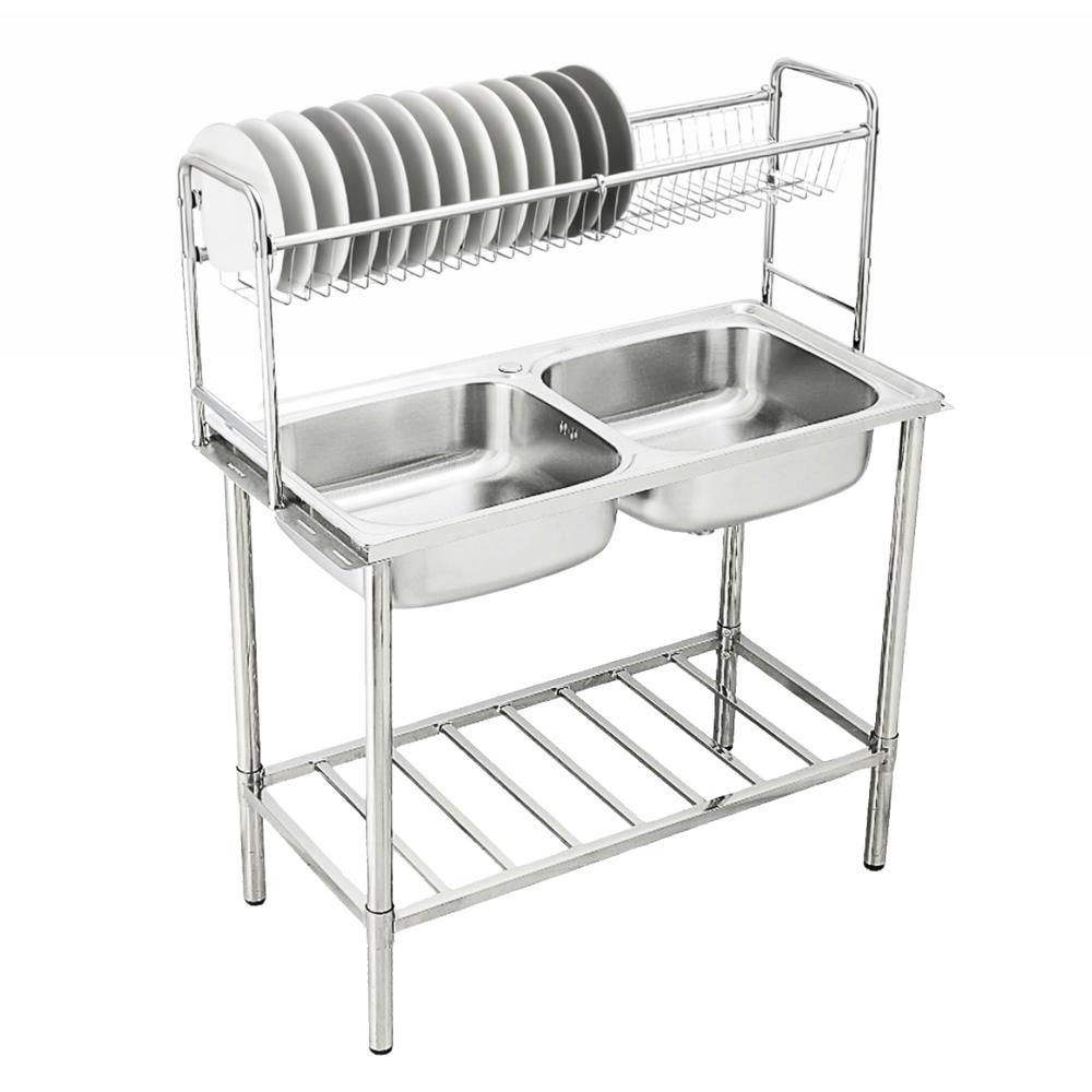 Lavadero Doble de Acero con Escurridor y Rejilla Superior 100 cm