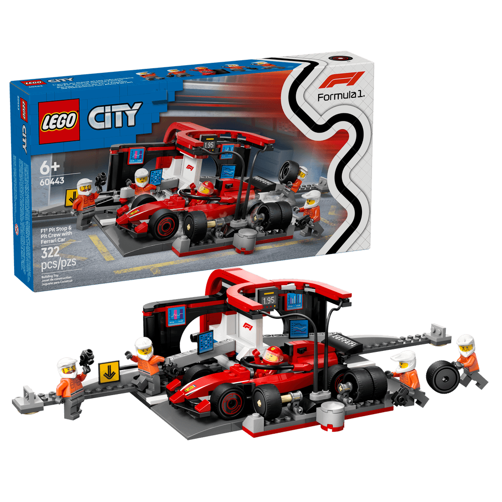 LEGO 60443 Parada en Boxes de F1 y Equipo de Mecánicos con Coche Ferrari