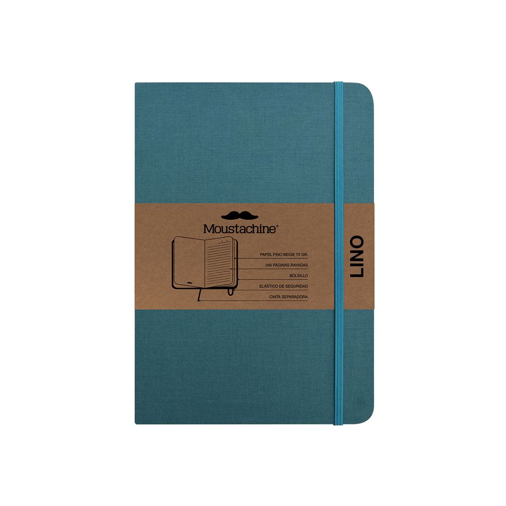 Libreta Moustachine Classic Lino Verde Agua Mediano Rayado