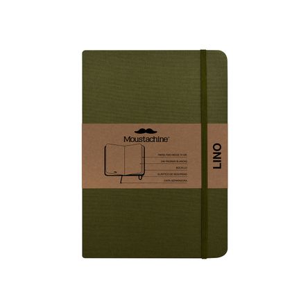 Libreta Moustachine Classic Lino Verde Militar Mediano Blanco