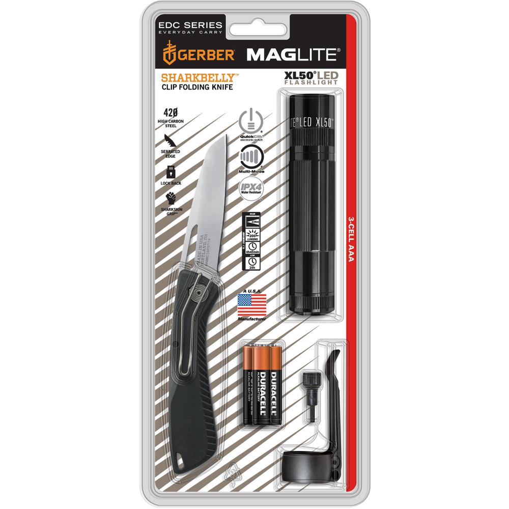 Maglite XL50 3AAA LED Flashlight and Gerber Sharkbelly Folding Knife Kit