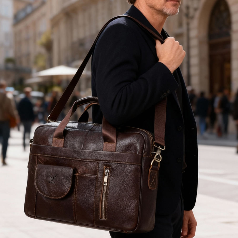 Maletín de Cuero Vacuno TIBALT MH640 Con Sujetador de Maleta de Viaje