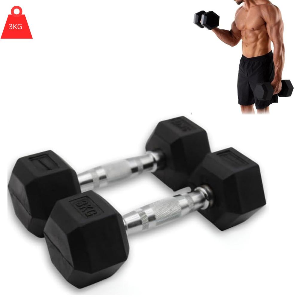 Mancuernas Hexagonales 3kg Pesas de Goma x2