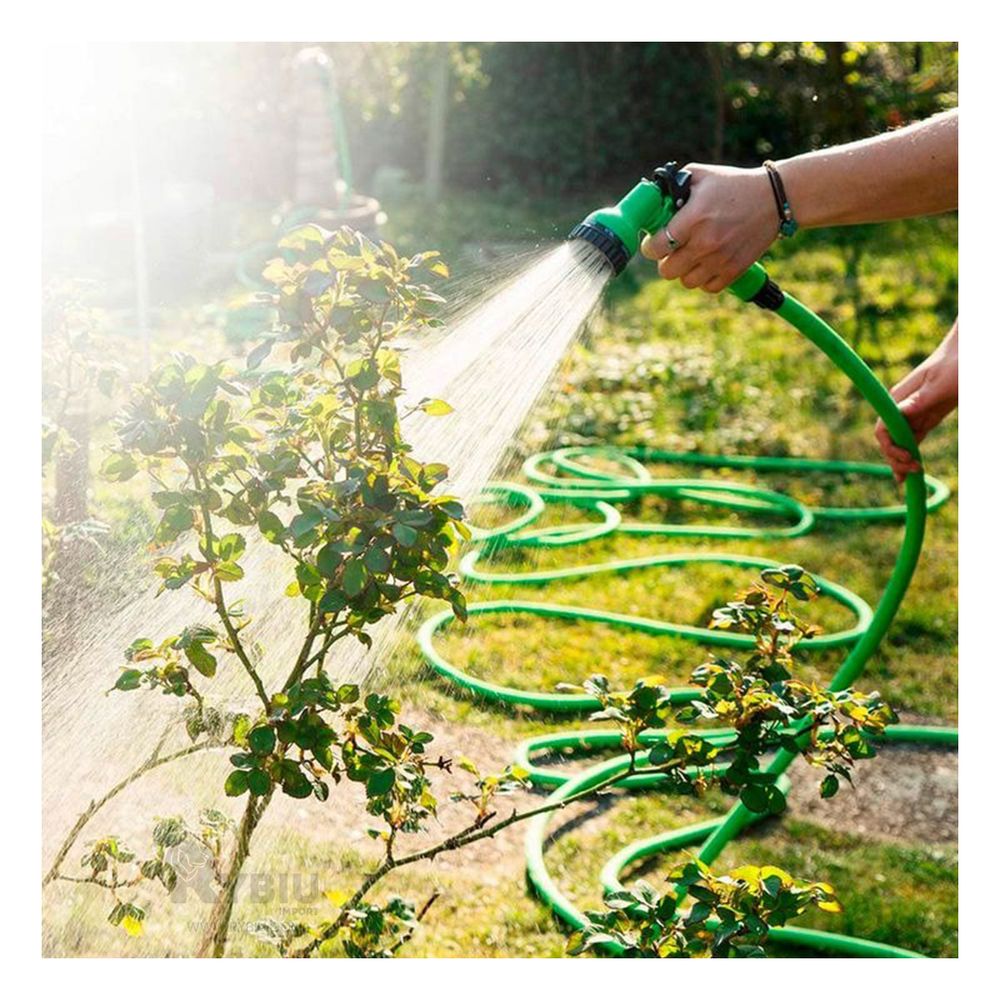 Manguera con Pistola de RIego Ampliable en Verde Y+Stickers