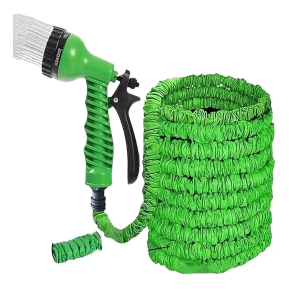 Manguera Expandible de 60 Metros con Pistola 7 Chorros Verde