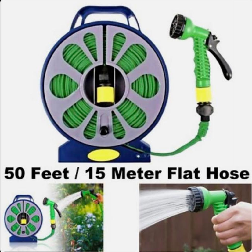 Manguera Plana Jardín 15M con boquilla Rociadora 7 Posiciones.