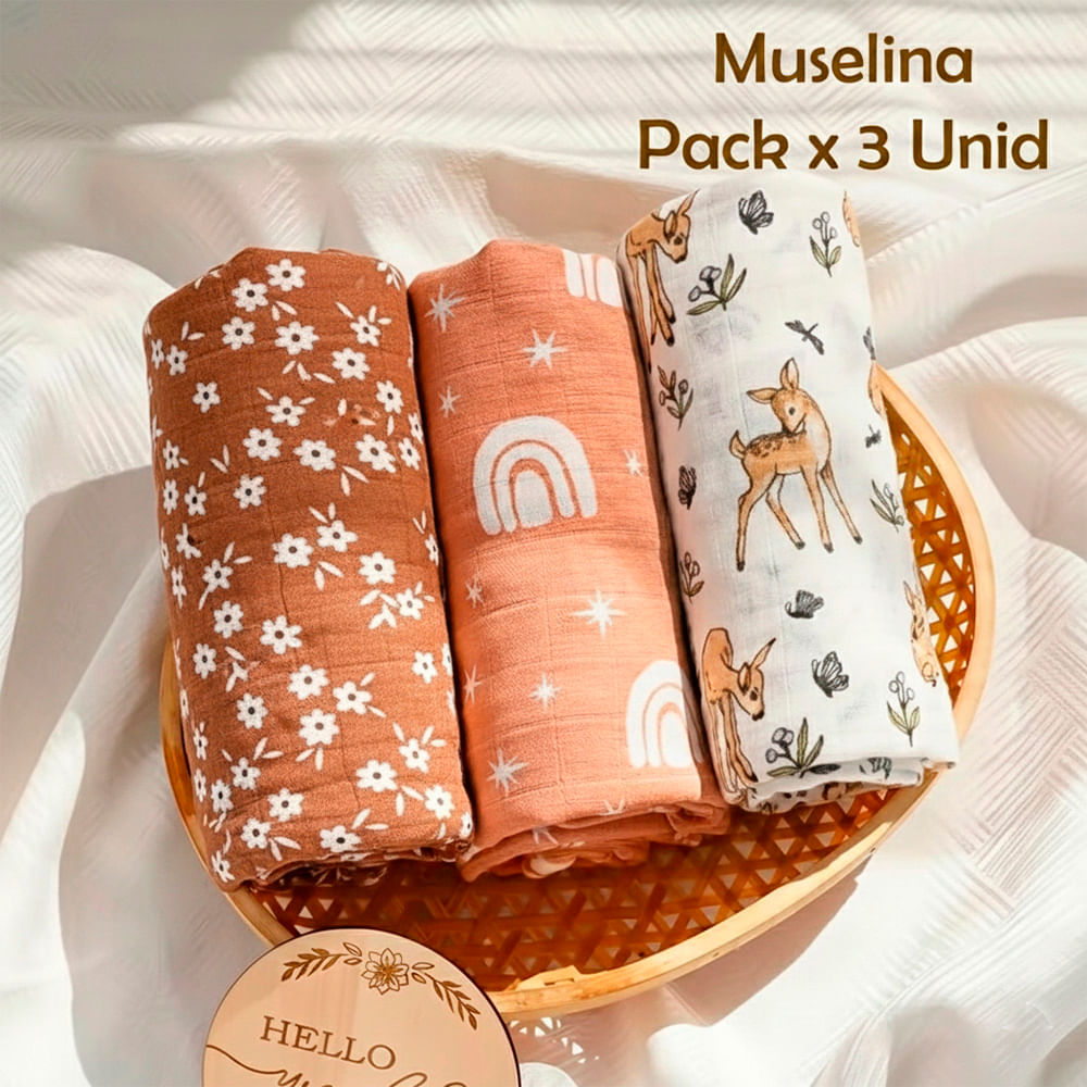 Manta Muselina para Bebé Algodón Pack x 3 Unidades SMT52