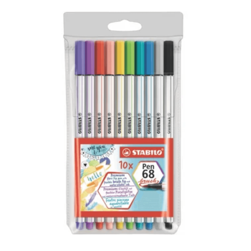 Marcador Stabilo Pen 68 Brush x 10 Colores