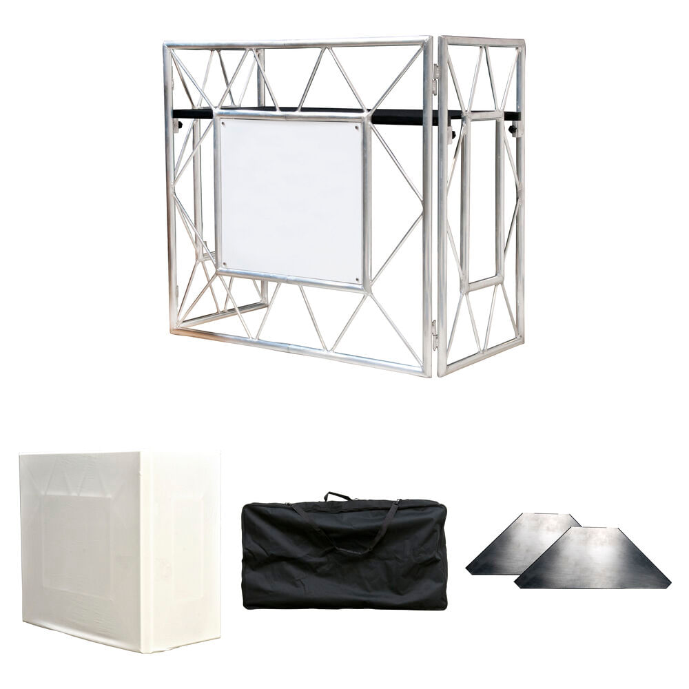 Mesa de Evento Profesional American DJ Pro Event TBL 2 con Scrim, Bolsa y Estantes (Plata | Blanco)