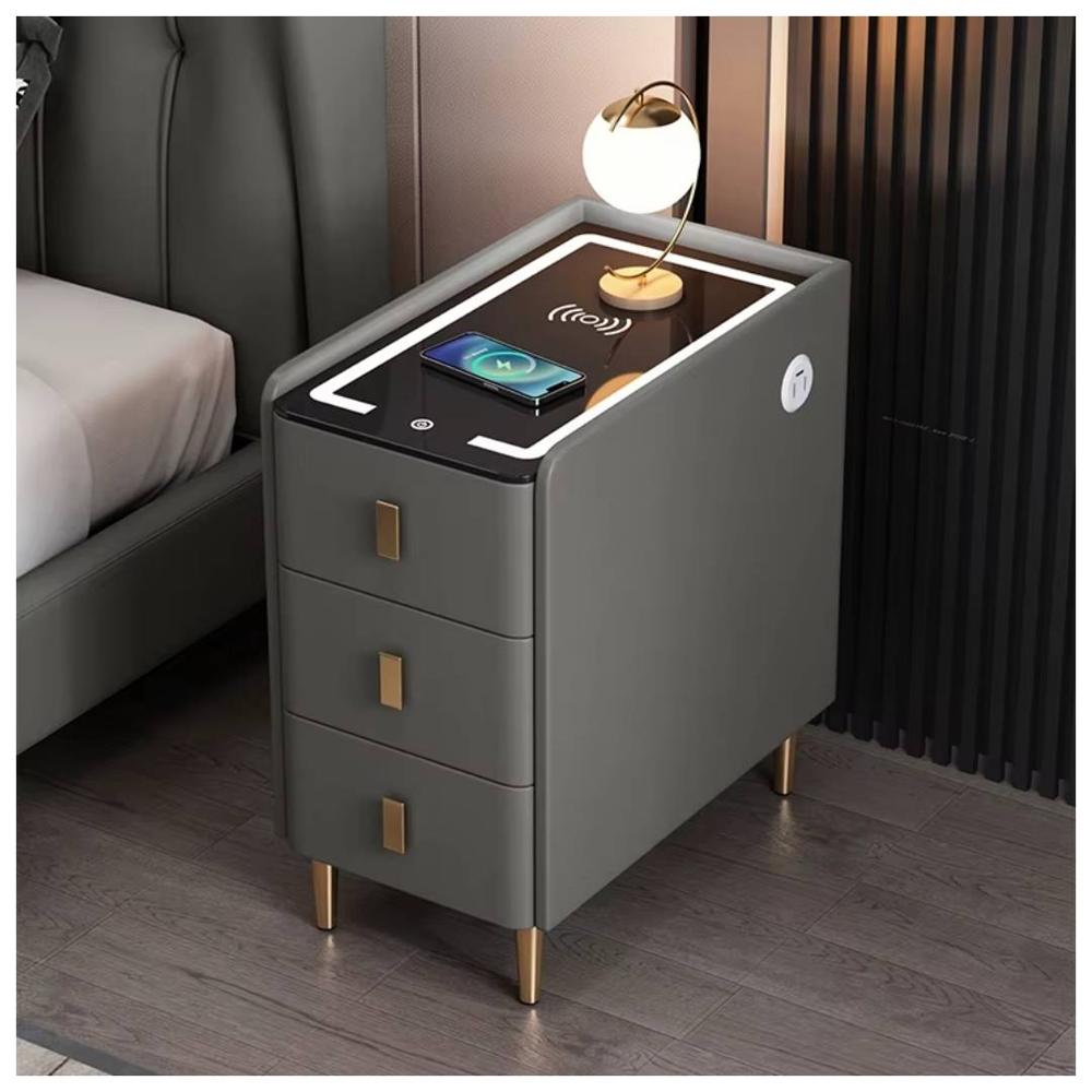 Mesa de Noche Compacta Inteligente Multifuncional 5 en 1 Plomo