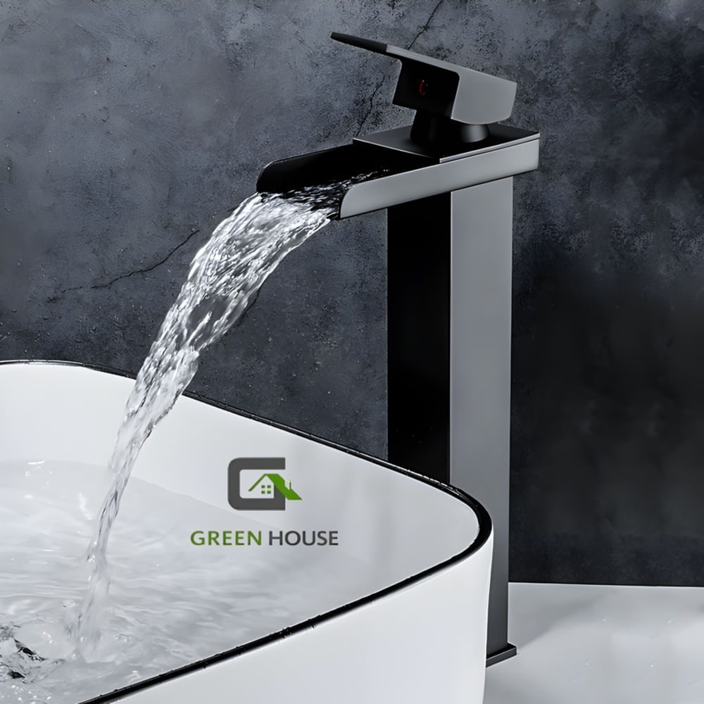MEZCLADORA MONOCOMANDO DE LAVATORIO CAIDA CASCADA NEGRO MATE 30CM