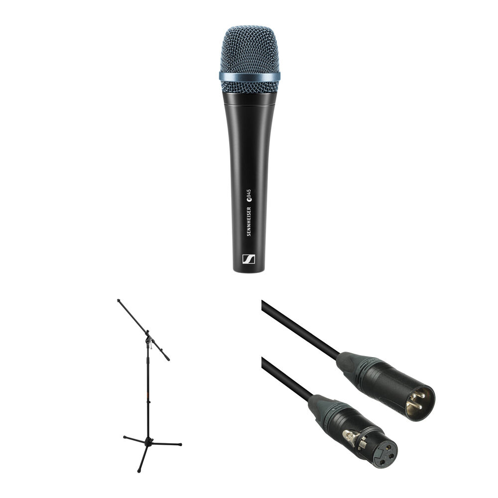 Micrófono Vocal Dinámico Sennheiser e945 Supercardioide con Soporte de Trípode y Accesorios