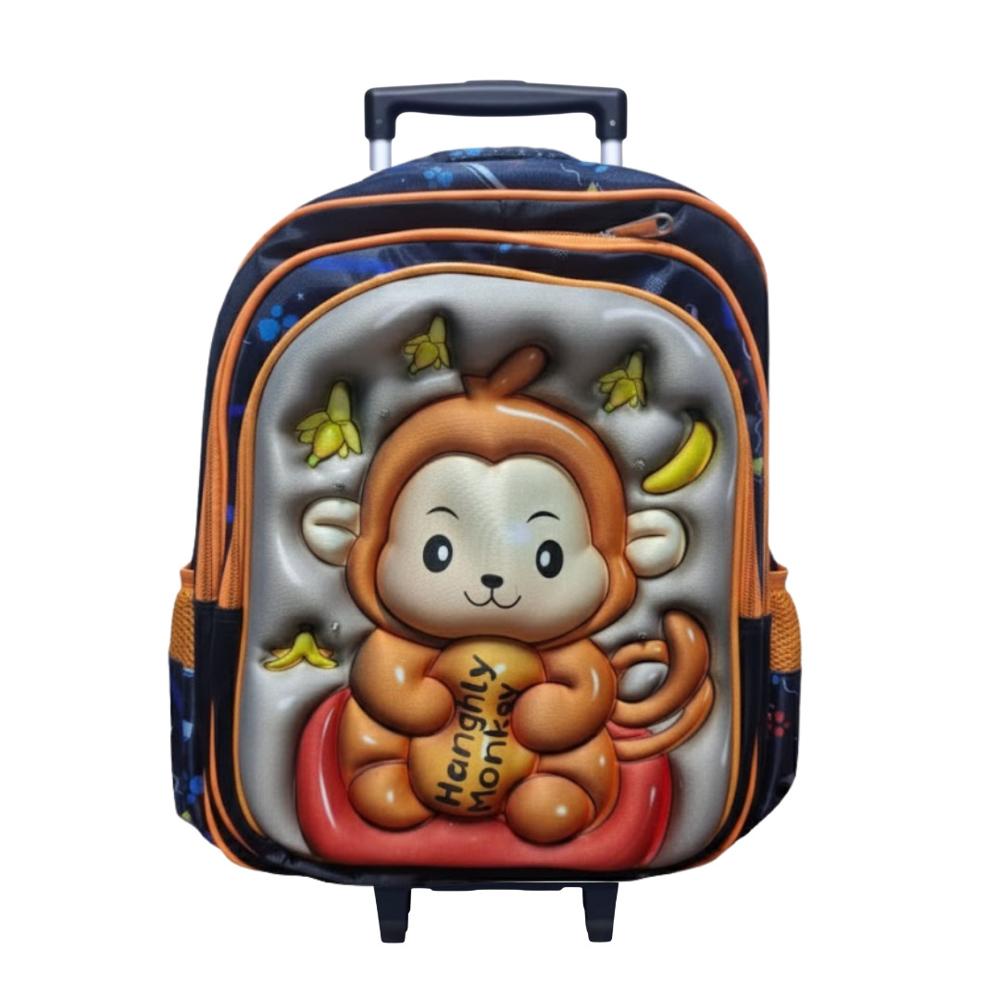 Mochila con Ruedas para Niños y Niñas Multipack 3 en 1 Diseño Monito Regreso a Clases