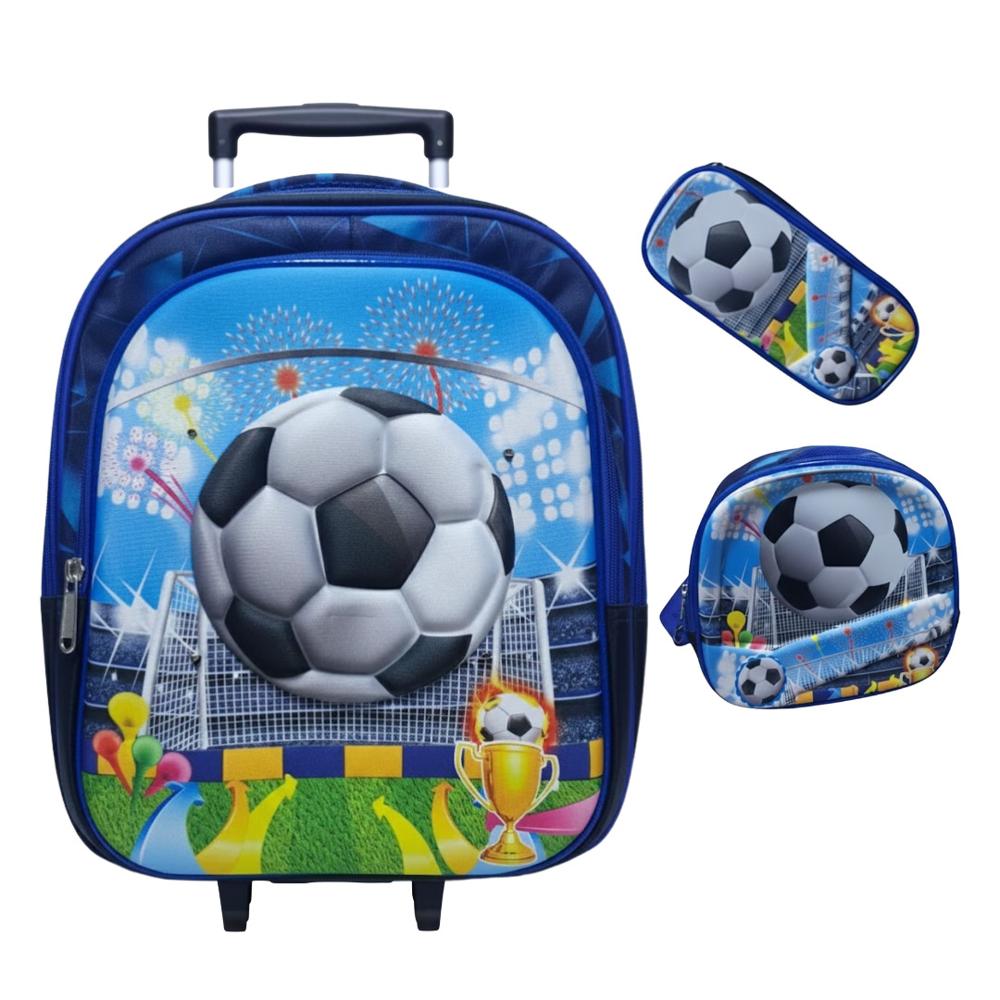 Mochila con Ruedas para Niños y Niñas Multipack 3 en 1 Diseño Fútbol Regreso a Clases v