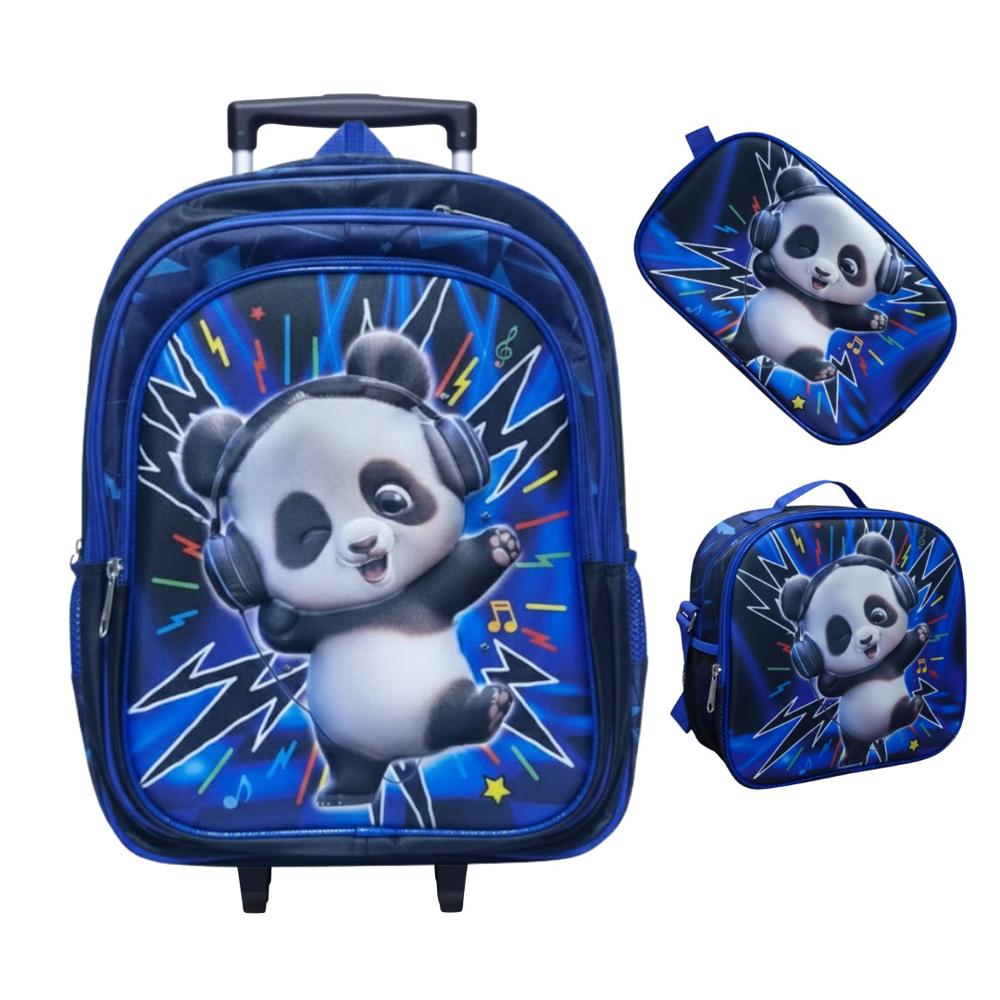 Mochila con Ruedas para Niños y Niñas Multipack 3 en 1 Diseño Panda Regreso a Clases