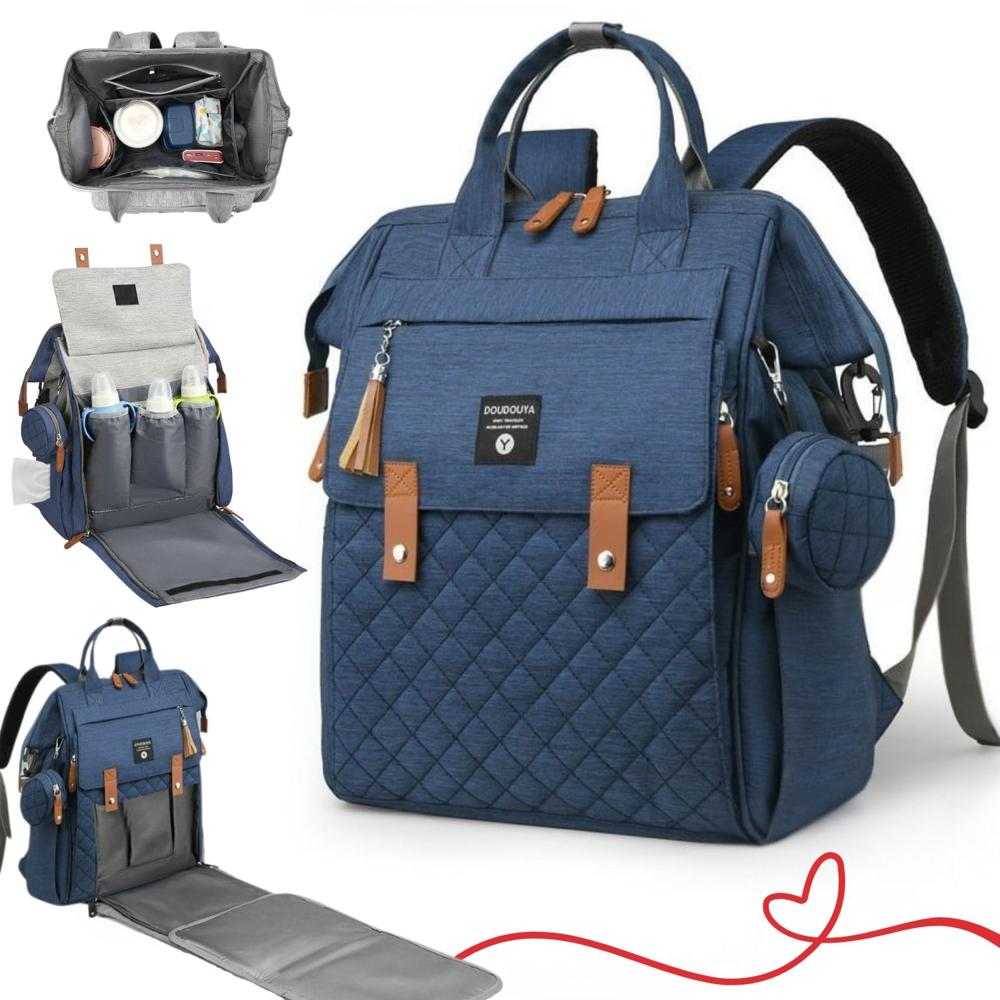 MOCHILA PAÑALERA LUXURY BAG 4 EN 1 MULTIFUNCIONAL, CAMBIADOR, TÉRMICO, IMPERMEABLE AZUL