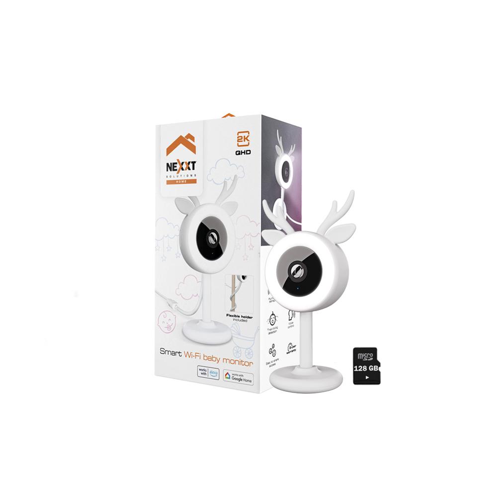 Monitor para bebé WiFi Nexxt NHC-B100 2K AudioBidireccional LED Detección llanto + SD 128GB