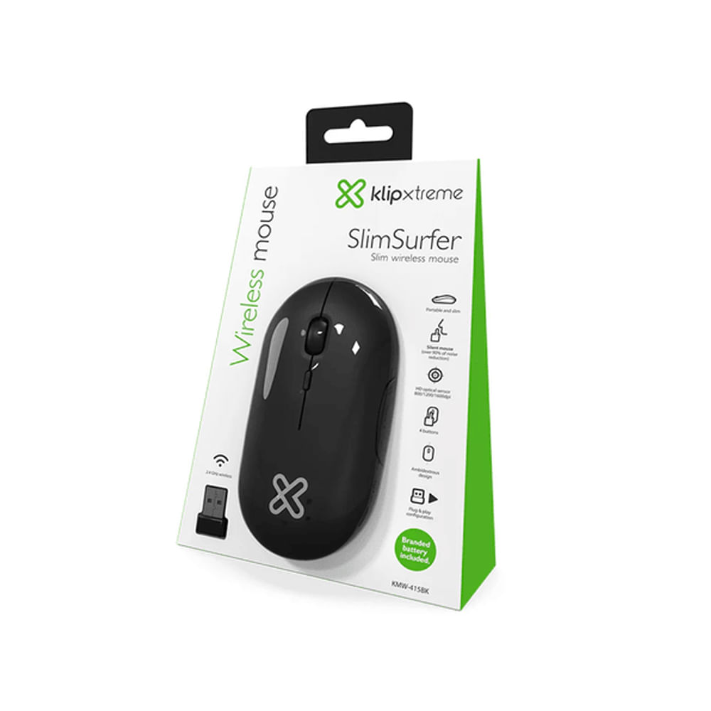 Mouse inalámbrico Klip Xtreme negro, 2.4 GHz, diseño slim y fácil manejo para una experiencia fluid