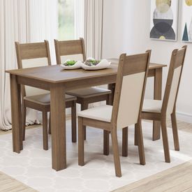 Juego de Comedor Tifani con 4 Sillas Marrón/Crema/Beige