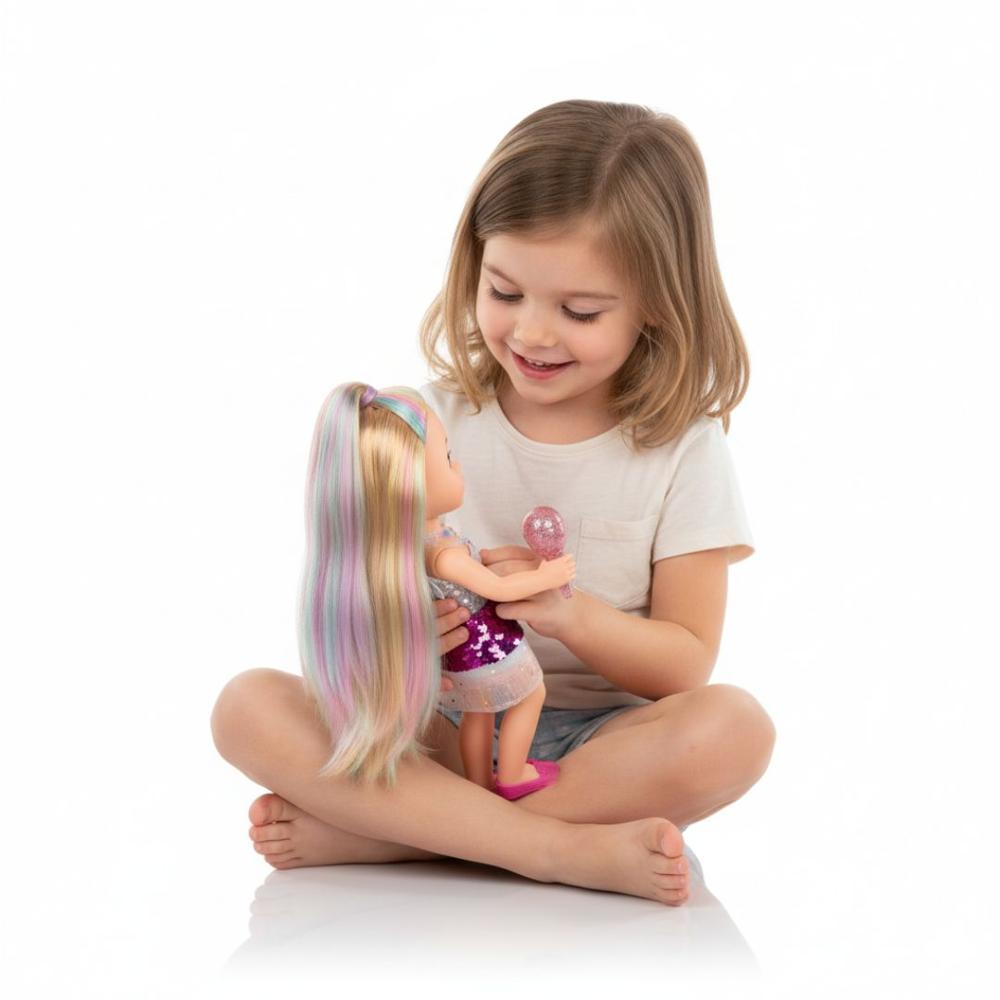 Muñeca Cantante con Micrófono y Luces LED Multicolor 34cm Musical