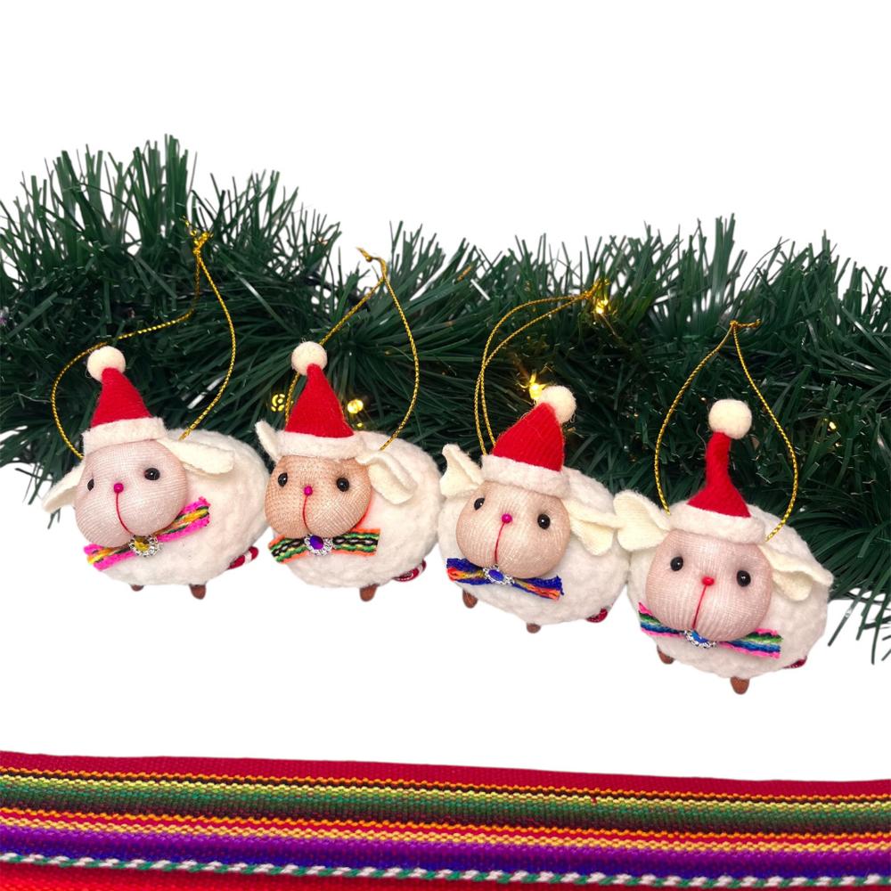 Adorno OVEJA Blanca con Gorro de Navidad Set 4 unidades NAVIDAD PERUANA