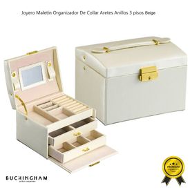 Joyero Maletín Organizador De Collar Aretes Anillos 3 pisos Beige