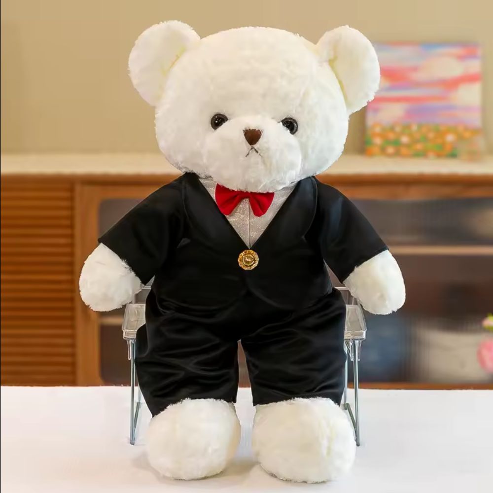 Oso de Peluche Novio Elegante con Smoking y Michi