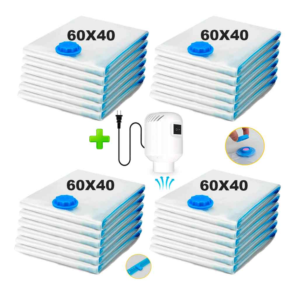 Pack 24 Bolsas de Aire al Vacío de Viaje 60x40cm con Bomba de Aire Alámbrico